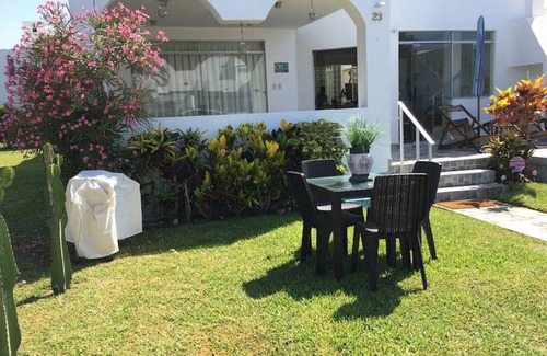 The first level of the house is furnished has cable, WiFi, and includes kitchen appliances, hot water, umbrella, beach chairs, coolers. The condominium is secure with security. Each room accommodates a maximum of 4 people. It can get hot during the summer and air conditioning is not common in Peru. There are ceiling fans + floor fans in the rooms but keep that in mind.