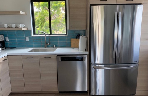 Make it a couple's getaway or bring the family - either way, you'll feel right at home! In the completely remodeled upstairs you'll find 2 bedrooms, a new bathroom with walk-in shower, a great room with north and south expansive white water views, dining area, a gourmet kitchen, living area, plus an outdoor deck to enjoy the ocean breeze and beautiful sunsets. The backdoor patio on the ground level has seating for relaxing, outdoor dining, or barbecuing-propane grill provided. The downstairs newly remodeled bedroom area has separate secured entrances via the backyard patio from either a sliding glass door into bedroom or adjacent bonus room door. The downstairs bedroom area is quite roomy and includes a queen sized bed, large desk/chair, couch and flat screen TV. In addition, a separate bonus room sits adjacent to the downstairs bedroom, and includes a ping pong table and an adjacent seating area with 2 couches. The bonus room is a converted garage, and it has a garage door that can be opened from the inside. A separate newly remodeled bathroom with walk-in shower is also located next to the bonus room downstairs. The lower bedroom, adjacent to the bonus room, is perfect for teenagers. It also provides privacy for work. Please NOTE the downstairs bedroom and ping pong table room are accessed from a separate entrance outside in the backyard, so may not be suitable for younger children.