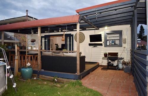 This 2 bedroom home has a great entertainment area at the rear. Good size yard with an above ground Pool. 6 seat dining table, TV and speaker to enjoy the outdoors. The home is fitted with all the conveniences you need for your stay.