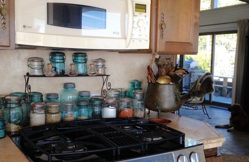 The kitchen is fully appointed. Bedding, linens, propane, firewood, towels, sheets, soaps, coffee, spices, etc. are included. There is also an outdoor patio with a table that seats 12, a propane barbecue, outdoor fireplace and sofa for lounging around it, two hammocks in the yard and two at the beach, a large deck overlooking the water, a duck pond and 2 small water features/fountains, free range rabbits, chickens and ducks, horses in our barn a two minute walk away. Starbuck the miniature horse lives attention so let us know if you would like to meet him.