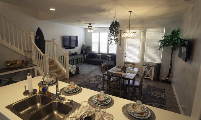 This 3Br, 2.5Bath 2-story townhome features 1400sq ft of living space, full amenities as you would normally see in any home. Five (5) wall mounted TVs throughout the home, one in every room and two in the living area. Video game systems for the kiddos, Xbox, PS5 and an NES Classic. Full assortment of bicycles for family bike rides to the surrounding beaches and local plazas.