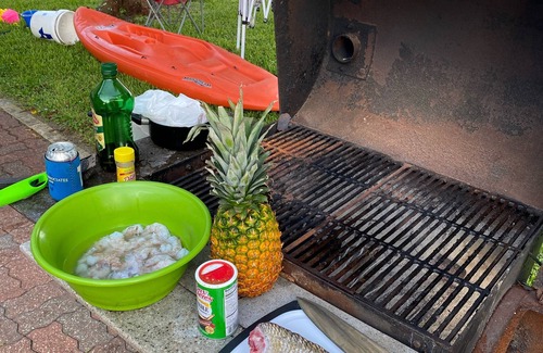 Kitchen fully stocked with all the amenities for a comfortable stay including Kuerig and drip coffee makers. Plenty of clean towels and fresh linens ready for you and your guests. Backporch has grill and Polywood chairs to enjoy the seabreeze!