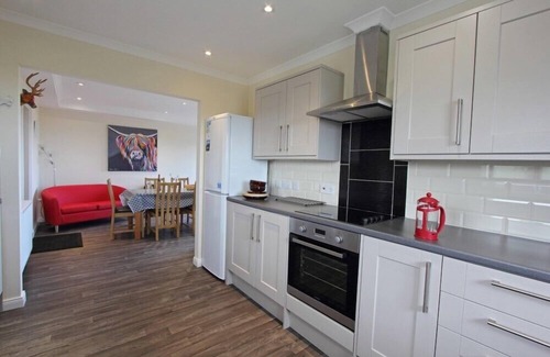 Amenities: Oil central heating with woodburning stove. Electric oven, grill and hob, microwave, fridge/freezer, washing machine, tumble dryer, dishwasher, slow cooker, George Foreman grill. HD TV, Freesat, DVD player, WiFi. Fuel, power and starter pack of logs for fire inc. in rent. Bed linen and towels inc. in rent. Ample off-road parking. Enclosed wrap-around gardens with lawns, patio area and garden furniture. Pet-friendly. Sorry, no smoking. Shop 4 miles, pub 1 mile. Note: Though electricity is included in the rent, electric for charging cars is not included in the rental
