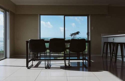 As you enter the driveway, you will be greeted with spectacular unobstructed views that set the tone for a relaxing holiday. The open-plan living and dining area features large sliding doors that invite the salty air and sounds of the waves inside. This peaceful paradise is ideal for families or groups seeking a memorable escape.