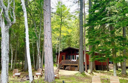 Steps from Algonquin Park's South Gate with 125 ft of wade-in kid-friendly rippled sand beach, this 3-bedroom 1-bath retreat offers over 900 sq ft of relaxation on 2 acres of wooded land with epic tall pines.