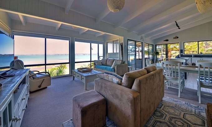 A fantastic beachfront home. Swimming, paddle boarding, kayaking, building sandcastles, collecting shells or just walking around the rocks is at your doorstep. There is also great fishing, or you can put your feet up on the deck and just watch for dolphins and the sunset. Paddle boards and Kayaks supplied.