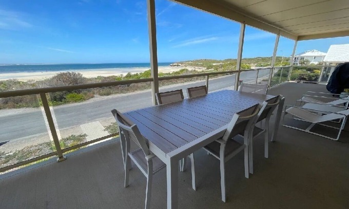 Welcome to Marion Bay Lodge, a spacious and unique beachfront holiday house that offers breathtaking ocean views across Marion Bay from Penguin Point eastwards to Butlers Beach and the cliffs below Meehan's Lookout.