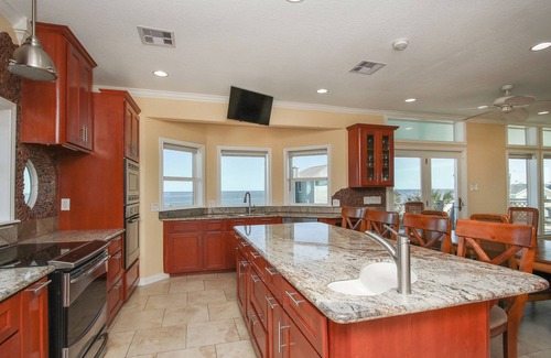 This is living on the beach at its best. Perched right on the beach, the view of the water from the front decks is unsurpassed. Fully stocked kitchen w/ top of the line appliances & induction cooktop. Travertine and quartzite floors throughout. Quality mattresses and furniture. Sink vanities & toilet rooms in bedrooms.