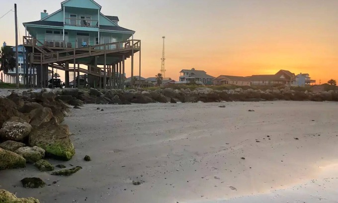 Great shelling, large numbers of pelicans and other birds always present, best fishing area in region, close to Galveston but far enough away from population center to feel like a retreat. Practically a private beach in the off season. Water is clearer and bluer than that in the City of Galveston due to offshore blue Gulf waters coming into San Luis Pass with the tides. Although sand beaches come and go in front of the house, there is always sand beach along the pass toward the bridge and, in the other direction, there is extensive beach that extends all the way to Surfside. Beaches in front will accrete in the summer and slowly erode in winter. Horseback riding available 15 min. away.