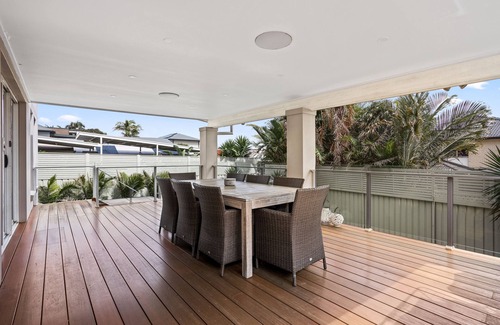 • Spacious covered alfresco deck with large gas BBQ and dining table with seating for 8