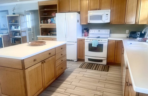 Spacious kitchen stocked with essentials