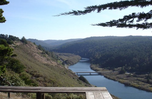 The BEAM'S END Guest House makes you feel as if you are on top of the world with it's forever views of the Pacific Ocean, Navarro River and coastal forest. This "one of a kind" home with its use of original virgin redwood bridge trusses and glassed-in living room with spectacular views ensures you an ideal vacation away from it all! A spiral staircase leads to the loft style bedroom with river views.
