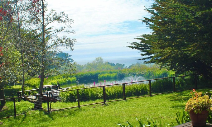 This lovely 2 bedroom 2 bath cozy cottage is a great place to stay while exploring the beautiful coast of No. California. The cottage is tucked away in silence interrupted only by the faint sound of the distant ocean. It has a spectacular ocean view surrounded by a peaceful pond, incredible sunsets, lots of trees and wildlife. Sits 5 minutes from Bean Hollow Beach and many others minutes away between Half Moon Bay and Santa Cruz. This cottage is safe and private with beautiful outdoor living.