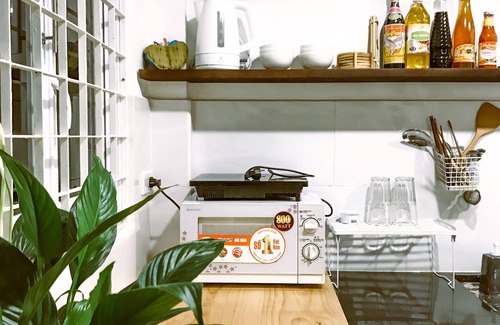 Locating on the 4th floor of Tran Quoc Thao - one nostalgic Saigon-atmosphere building, this 60m2 apartment is modern and cozy enough for any couple, family or a group of friends. We focus on bringing Saigon's true living pace from the 90s generation’s comprehension into “Bean In The Pod”. You might notice it's a combination of the old and the new through our decoration, the information shared in our home and also the place we choose to locate. The house set-up allows guests to gather around the common space for joyful sharing, or to have some tranquil moments by the windows. In those long lightsome Saigon evenings when the sun doesn't sink until after 6 o'clock, you might like to linger at the green terrace of our house.
