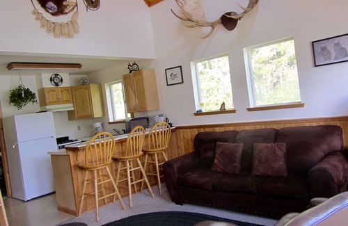 The Bear Country Lodge has two private smoke-free houses on the shores of Lake Eyak. Both houses have fully equipped kitchens, wrap-around decks with grills overlooking Lake Eyak, TV, VCR/DVD players, and free wifi internet. Our Lodge feels like home, is comfortable, spotlessly clean, and decorated with many Alaskan treasures from local adventures.