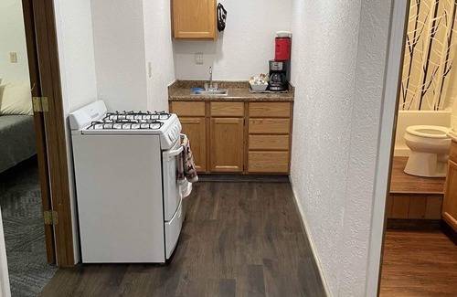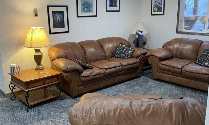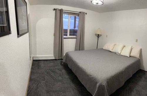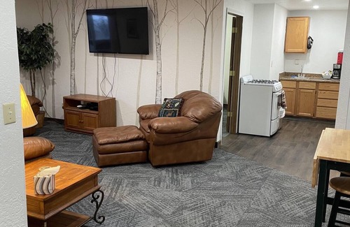 Bear's Den Apt of the Main House of Fox 'n Fireweed. Contains a KING bed in one bedroom, queen bed in second bedroom, living room with couch, love seat and overstuffed chair, private bathroom with tub/shower combo. Located in the lower floor of the main-house- daylight basement. Kitchenett contains stove, microwave, fridge and coffee maker. Living room has a large TV with dvd player and satellite tv, wifi is available to guests as well. Original artwork decorates all rooms; some being for sale, as there is a working art studio in lower level of house.