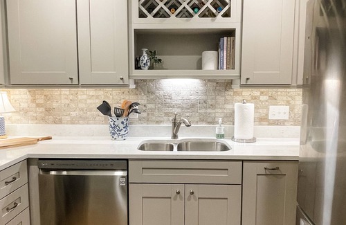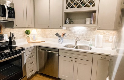 Bedroom offers King bed as well as sleeper sofa in the living room. Kitchen fully equipped with new appliances, Keurig and regular drip coffee maker. Enjoy dinner in, around the dining table. Electric fireplace in living room provides a cozy ambiance.