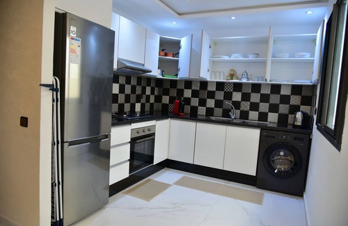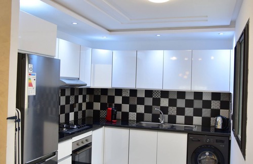 Relax and enjoy your stay in this stylish and family-friendly 2-bedroom apartment located in the heart of Kenitra’s Center Ville. Perfect for families, couples, or business travelers, this apartment includes: 2 bedrooms: 1 queen bed, 2 twin beds, and 1 crib, 2 bathrooms with a bidet and shower, Spacious living area with 2 sofa beds for additional guests. Fully equipped kitchen, ideal for home-cooked meals, Air conditioning throughout the apartment, Free private parking on-site for your convenience. Smart TV with Netflix, perfect for unwinding after a day out. Whether you're visiting for work or leisure, you'll love the comfort, central location, and thoughtful amenities of this modern retreat.
