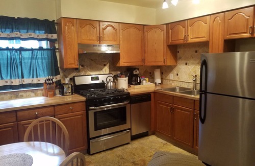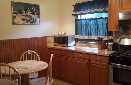 Beautiful little apartment in the heart of Crested Butte. Remodeled apartment is 1 block from Elk Avenue where there is dining, shopping and the entertainment district. Walk 1 block to the ski shuttle up to the Crested Butte ski area. Apartment has 2 bedrooms - 1 with queen bed and the other with a bunk that sleeps a double on bottom and a single on top. Apartment has a gas fireplace and cable TV. Kitchen comes with oven/stove, dishwasher, microwave, ice maker, coffee maker and all the other appliances that you will need. A washer/Dryer is also available for guest use. Enjoy the outside deck with a gas grill and rocking chars to sit back and relax. Large back yard and off street parking. Do you need more room - check out our 3 bedroom listing VRBO # 1588173