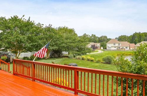 A large backyard on a gorgeous pond. The House is located in the water community of Poquoson Virginia. Conveniently located halfway between Virginia Beach and Williamsburg.