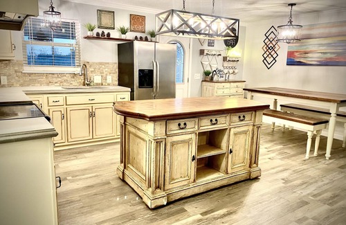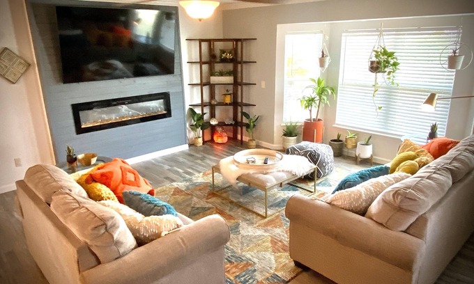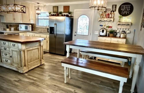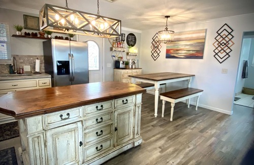 Relax and enjoy your vacation days with your loved ones at this beautifully decorated, freshly remodeled house in a quiet neighborhood at the end of the street. Awake rested & refreshed in our top of the line beds along with ultra soft and comfortable bedding. The cozy & private master bedroom features the premier purple mattress as well as a private exit through the master bathroom onto the screened in back patio. The furnished serene patio is also a perfect place to unwind. This home is nestled in a private neighborhood at the end of the street. It has been completely remodeled to offer comfort along with tranquil vibes. It features an open & split floor-plan living space. You'll also enjoy a large, fenced in back yard. Each room is equipped with the most comfortable beds and furnishings. The luxurious and spacious master bedroom boats the premier purple mattress. The private master bedroom is located on the opposite side of the house, The two additional bedrooms share a bathroom are separated by a small hallway between them. The neighborhood is peaceful and a great deal of it has recently been beautifully rebuilt since hurricane Michael in 2018.