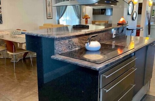 Quaint 4 bedrooms 2 bath farm house with modern vibe. Can sleep upto 11 guests. Indoor workout area. Fully equipped kitchen with granite countertops. There is a lot of space in this property and a very open floor plan. Once you enter the home you will see the kitchen and living room, on your left will be the high end gym equipment and the master bedroom. There are 2 steps going down leading to the space with the gym and as well as another step going into the magnificent and open master bedroom. There is also one step going into the beautiful master bathroom. Our farm has many mango and lychee trees, also avocados, loquats, mulberry and citrus trees. Sleep under the stars and trees in the hammocks.