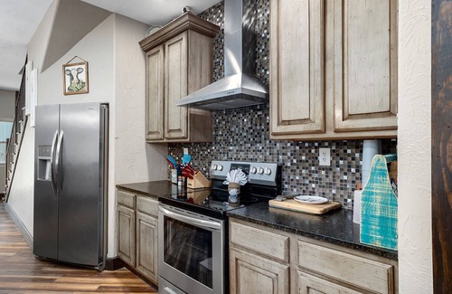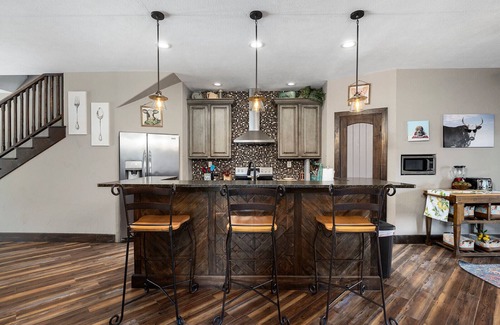 Welcome to our exquisite 6-bedroom, 4.5-bathroom stand-alone lodge, where modern rustic finishes meet timeless lake house charm. This one-of-a-kind retreat features live cedar siding, a spacious wrap-around porch, and ample living spaces designed for relaxation and gatherings. Nestled within our resort, you'll enjoy the perfect blend of privacy and access to resort amenities. With its unique character and luxurious comforts, this lodge offers a truly unforgettable experience for your Branson getaway. Experience the beauty of Table Rock Lake while immersing yourself in the cozy ambiance of our stunning lodge – your ultimate lakeside retreat awaits!