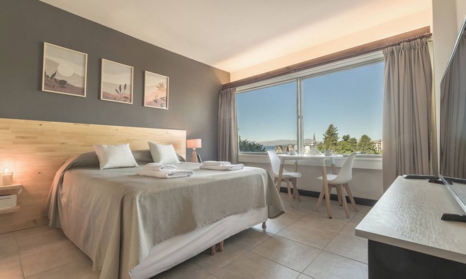 In the best location in Bariloche, this apartment is ideal for 2 people. The apartment has WIFI. It is just steps away from the civic center and main tourist attractions. It is perfect for those who wish to work remotely or enjoy a privileged view of Nahuel Huapi and the civic center. It has been newly remodeled exclusively to offer you the best stay. The building has private (paid) parking on the premises.