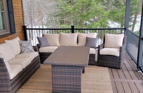 The home is spacious and absolutely charming. It rests on the shore of picturesque Hermit Lake. Winter months ice fishing off the rear of the property, snowmobile trails nearby, skiing and snow tubing 30 minutes away to many mountains near by. In other words (please refer to last picture to see location of some of the ski resorts near us) Winter Wonderland. Summer months: The home offers Central Air conditioner, A sandy beach is just a two minute walk down a rustic road. Near Golfing areas (10 minutes away) Feel like taking a dip? Swim to the raft then dry off and work on your tan. This little treasure is located in Central New Hamphire which is absolutely beautiful! Ensuring peace and tranquility for some, for others, a restful conclusion to the end of a day filled with one or several of the many great adventures awaiting you in New Hampshire. If the afternoon with a good book sounds good to you, picture yourself nestled on the porch catching up on your reading while glancing out to the water between pages. For some great adventures we are really central to all that New Hamphire has to offer. Grab a canoe or a kayak and go explore the gorgeous and tranquil Lake Hermit where you can go fishing. Lake Hermit is described as one of the best lakes to fish. The rental includes 5 kayaks, a canoe and a standing paddle board🤗. At night the fire pit offers the opportunity for everyone to gather and share the wonderful adventures experienced during the day or catch up with yourselves listening to the crackling of the fire. Once out in the back yard you will never want to come inside, however, when you do, you will be in love with this home! Tasteful furnishings and a completely and generously stocked kitchen/living room/dining room. The first floor has two bedrooms, each with a comfortable queen size bed and the loft offers two comfortable twin size beds. There is also a studio in the lower level with a full bath. The property is just wonderful! The property represents New Hamphire! The Home is near everything, however, it offers privacy and tranquility. The home is completely furnished. A standby generator automatically kicks in if there is a power loss. A new heating system assures you long hot showers and heat during the winter months. Central air conditioner. The house operates with monthly checked smoke directors and carbon monoxide detectors. Our prices are accommodating for you and your guests to enjoy this beautiful property and its prime location. You will not be disappointed. We are a couple who are committed to and take pride in our guest's satisfaction. We are located in Sanbornton, New Hampshire which is near many of the most prime winter and summer attractions and activities, along with other points of interest that Central New Hampshire can offer. Please refer to our reviews to know what our many guests have to say after their stay. The special is not days that lead to a Holiday.. please refer to calendar pricing.