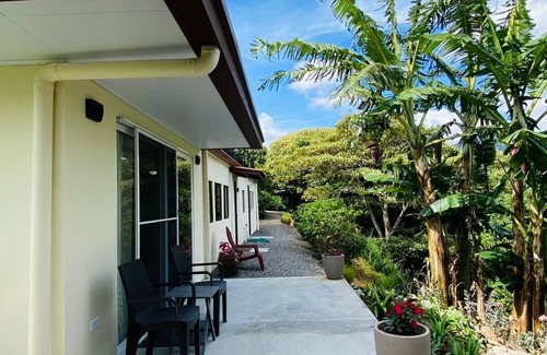 Beautiful apartment located on a lush hillside 5 minutes (3 Km) from downtown Boquete. Perfect for a couple to enjoy all that Panama has to offer. Gated property with onsite parking. Come and enjoy the views of the Palo Alto mountains and the Rainbow Valley.