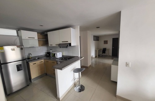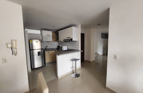 Beautiful furnished apartment in La Flora neighborhood at the north of Cali. Located close to Chipichape Shopping Center, La Flora park, Yumbo industrial zone, nightclubs, bars and restaurants and only at 20 minutes to the Alfonso Bonilla Aragón International Airport. It has 2 bedrooms (1 with air conditioning, another with ceiling fan), 1 bathroom, dining room, 1 sofa bed, TV, kitchen, 16 piece dinnerware set washing machine, microwave oven, clothes iron with ironing board.