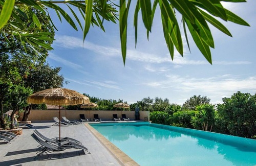 The residence is located 8 km from the center of Porto Vecchio, 34 km from the center of Bonifacio, and 143 km from the center of Bastia. It sits 3 km away from the sea and the countryside of Cirendinu, France. Nearby attractions include the sandy beach "St. Cyprien & Pinarellu," which is just 3 km away.