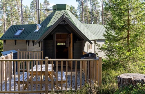 The chalet is perfectly positioned within a wooded area of the Cairngorms National Park resort, offering a tranquil and secluded setting surrounded by natural forest landscape. The peaceful location provides an ideal environment for those seeking a retreat in nature.