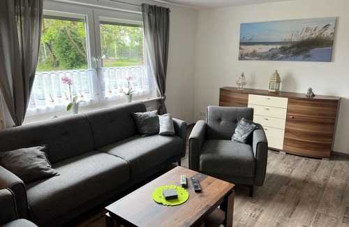 The "Peters" is a 3-family house located in Barkholt, Germany, approximately 8 km from the sea and beach. It features a large shared garden with a lawn area. The property offers various amenities, including central heating, parking facilities, and an EV charging station. It also provides internet WiFi access, allowing you to stay connected during your vacation rental or holiday rental. The yard is an added outdoor space for your enjoyment.