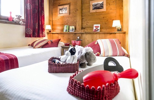 "Les Etincelles (TIG131)", 3-room apartment 45 m2. Cosy and wooden furniture furnishings: living/sleeping room with 1 double sofabed, dining table and satellite TV. 2 rooms, each room with 2 beds. Open kitchen (4 hot plates, mini-oven, dishwasher, toaster, kettle, microwave, electric coffee machine). Bathroom, sep. WC. Electric heating. Balcony. Beautiful view of the mountains. Facilities: telephone, safe, hair dryer. Internet (WiFi, free). 1 pet/ dog allowed.