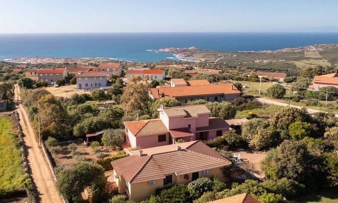 Villa Li Feruli is a 2-family vacation rental house situated in Paduledda, offering a shared garden with plants and trees, an outdoor shower, and ample amenities including a yard, internet WiFi, and parking. The property is nestled in an elevated position, just 3.5 km from the center of Isola Rossa and the sea, providing convenient access to nearby beaches and attractions.