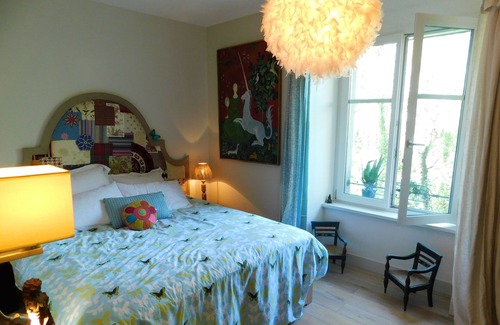 With a panoramic view of the lake and the Alps from the lounge, and a country view of the gardens of a mansion, rooms to sleep, you can discover the beauty and charms of the city of Neuchâtel. The apartment of 200 m2 has been designed in a loft spirit with a living room, both spectacular in its dimensions and cozy because of the aesthetic choices made. 3 beautiful bedrooms and 2 charming bathrooms complete this apartment. All materials are noble and natural, (parquet, travertine stone, wood, leather, silk curtains, linen and cotton).