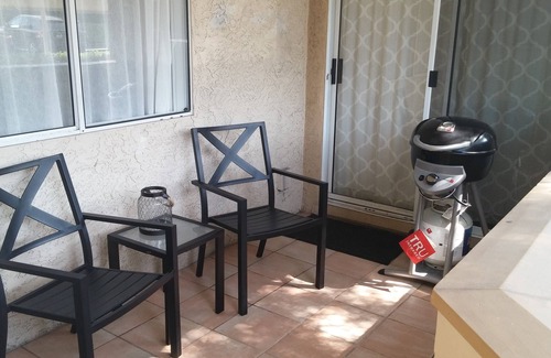 Located near restaurants, beaches, hotels, and the harbor in Dana Point! 2 bedrooms, 2 bathrooms, full kitchen, dining room, and living room with sofa bed. Master bedroom includes a king size bed, TV & cable, shower & private bathroom, and large walk in closet. Second bedroom includes a queen bed, full dresser, comfy armchair, and also a large walk in closet. Second bathroom is located next to second bedroom. Fully functioning kitchen with small breakfast table, Keurig coffee maker, microwave, oven, & large fridge. Large dining room table seats 8! Living room includes 50" flat screen smart TV & cable; and sofa can be pulled out to become a queen bed. Ritz Pointe pool & clubhouse just steps away from unit. A gas grill is provided on the patio. Beach chairs, towels, and umbrella included with rental!