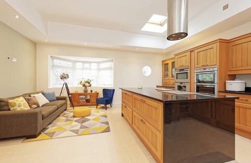 This luxury seaside getaway is perfect for families or couples wishing to get away and enjoy the sights and sounds of Margate and the Kent coast. The house has loads of room and is nestled in a quiet street just a stone's throw away from the beach and promenade.You will be welcomed to a very spacious, comfortable and newly renovated house, decorated in a classic and restful style. The house is located 150m from the beautiful family beach, Westbrook Bay. The property consists of four bedrooms, super king, king, double and single rooms. There are two spacious living rooms, one bathroom, a separate toilet, a separate shower room and kitchen with dining area. The large back garden has a BBQ and patio area, perfect for those summer afternoons.