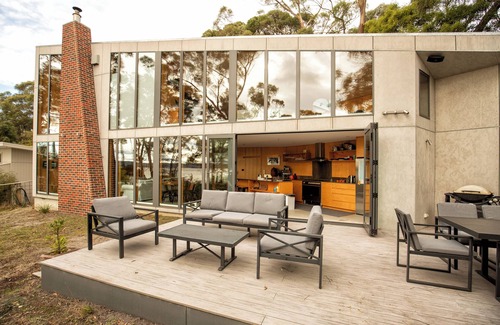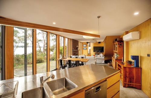 This sleek, stylish waterfront coastal home has been architecturally designed to create a serene escape on picturesque Bruny Island! An incredible space both inside and out, the home features a blend of natural and industrial materials and has been thoughtfully curated to provide a comfortable and luxurious experience. Amenities include an indoor fireplace, laundry, coffee machine, free Wi-Fi, BBQ, pizza oven, and a charcoal rotisserie! Swim, dream, hike and enjoy the magic of Bruny Island!