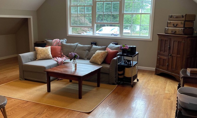 Bright, spacious, and full of New England charm, this stunning second-story guesthouse is the perfect coastal escape.