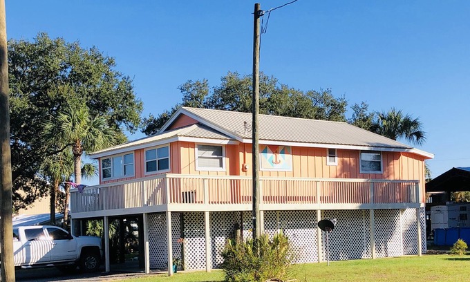 This rental has everything you need for a family vacation, couples getaway, or fishing trip. The gulf is a short distance via the canal (tidal, this means on low tide there is no water) beside the house. There is a fish cleaning station with water, outdoor shower, tiki bar with small fridge (our favorite spot), space for one car, and a swing on the concrete slab beneath the house. There is three additional parking spaces in front of the house and a long parking space that will accommodate a truck and boat trailer.