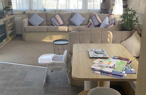 Spacious, light and airy, stylish caravan. Great sized rooms. Master room features an en-suit toilet. Small decking area, own parking space. Perfect base to relax or to enjoy the on site facilities and entertainment. Large indoor pool, clubhouse, crazy golf, fishing lake, nature reserve. Located opposite a beautiful sandy beach. Light railway station on site travelling to dymchurch or dungeness. Lovely on site pub with sea views. On site shop. Local Spar, Londis, chippy, kebab shop.