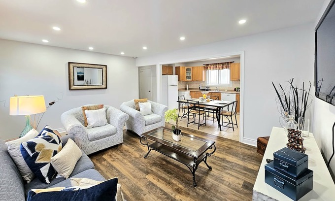 Beautiful 3-bedroom house centrally located in a quiet neighborhood, within walking distance to GO-Train stop, and public transportation. The kitchen is fully equipped with basic supplies. Free two parking spots. This beautiful home can be a perfect quiet getaway. With its central location, you are steps from nature walks, hiking trails, great restaurants, and grocery stores.