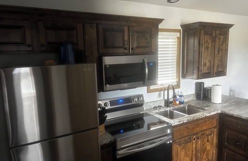 Stay comfortably in New Boston at this newly constructed 1-bedroom White House Cabin #3. Nestled in nature, this cool retreat features a cozy living room with a queen size sofa bed, perfect for relaxing after a day of exploring. The private bedroom boasts a full size bed, ensuring a good night's sleep for guests. Catch your favorite NFL & college games with 2 TV’s and fast wifi connection. Other features include nearby designated parking, large refreshing shower, washer, dryer, plenty of storage space for long term stays, large porch with Adirondack chairs, well equipped kitchen with all new appliances, new furniture throughout. Be sure to check out the monthly rate! With AC and heating, you'll stay comfortable year-round. We think our place will help you experience everything New Boston has to offer!