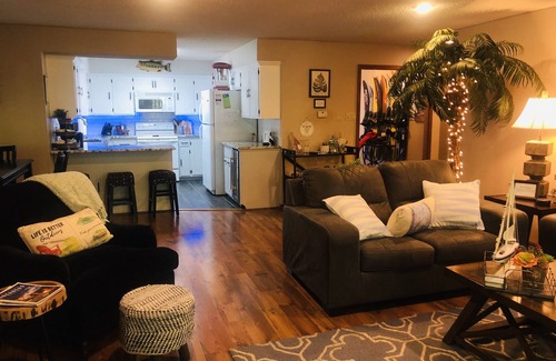 This unit comfortably sleeps 8. The master bedroom has a king size bed. The spare bedroom is perfect for kids or adults as it’s equipped with a queen bed and a daybed trundle. The sofa sleeper comfortably pulls out into a full-size bed. Additionally, there are two full bathrooms.