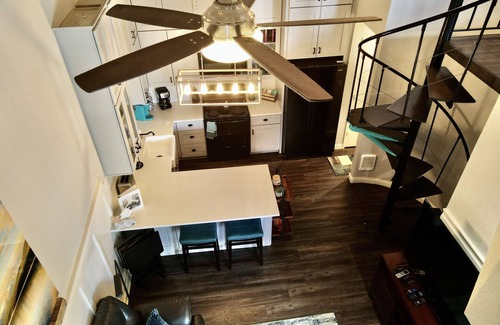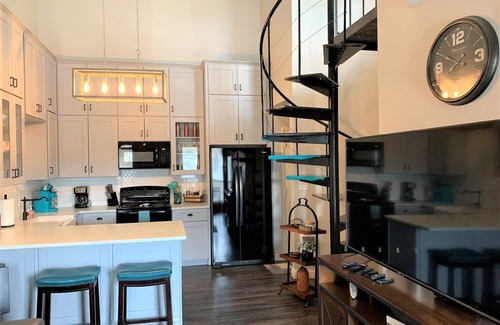 The particular condo is across the parking lot from the clubhouse where the communal grill is located as well as the Laundromat. Two LG portable AC units have been added for summer comfort. Located on the second floor, there is an interior spiral staircase to the third level where the Master is located on in open loft.