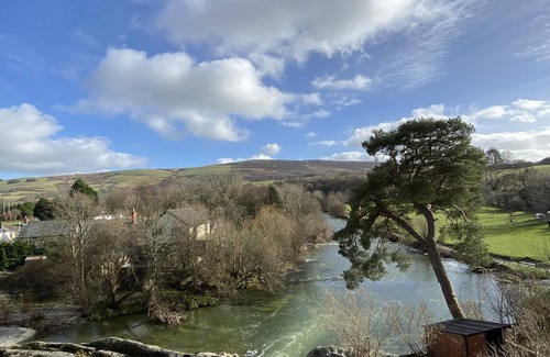 Beautiful self catering cottage on the majestic river Wye with mountain views, log burner and private balcony. Fully equipped kitchen with aga, super kingsize bed and bath with shower over. Private garden with seating area. Pets welcome. Walking distance to the Elan valley and the Red kite centre. Rhayader has a good number of pubs and restaurants within walking distance from the cottage.