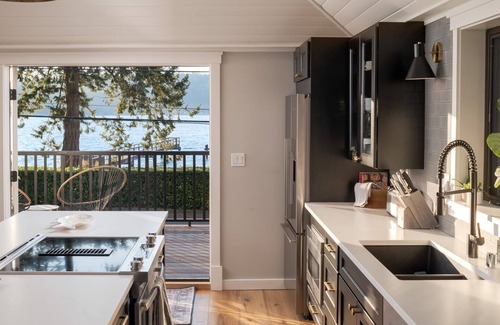 Welcome to Marinwood Beach House! A beautiful & tranquil getaway on the shores of historic Crystal Springs! One of the best beach & neighborhoods on the island. Completely renovated 1930's cottage w/chef's kitchen, cozy designer furnishings and Puget Sound Views. Take in sunsets, watch marine life & relax beachside on 100 feet of private beachfront and immaculately landscaped garden - one of the few private beaches in our neighborhood. Walk to trails & minutes to Pleasant Beach Village.