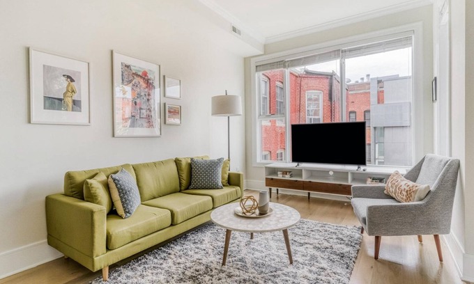 This apartment for rent in Dupont Circle invites you to explore DC's most beautiful neighborhood. Old-World townhouses blend harmoniously with condos and modern apartments, only 13 minutes away from Union Station by car and train. Passing through the inner ring of Dupont Circle is Massachusetts Avenue, known for its grand mansions and embassies. Widely popular for its bohemian and alternative scene, Dupont Circle maintains all the conveniences of urban living and a mix of popular galleries and fine dining. A bicycle will come in hand when exploring this bike- and pedestrian-friendly neighborhood with numerous green spaces for a quiet afternoon.